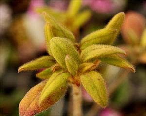 2枚目は金毛ツツジです。葉全体が微毛に覆われていて黄色に見える。