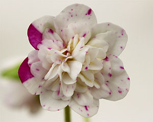 1枚目は青軸の千重で点々模様が入る花です。これまでとは違う交配でできたもので、なんでこの交配でこうなるのか理解できませんが、なったので仕方がないと思います。 2枚目は濃赤の唐子咲です。たまたま目についたので載せます。実物はもっと綺麗でした。
