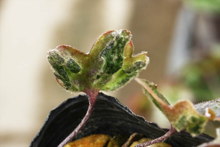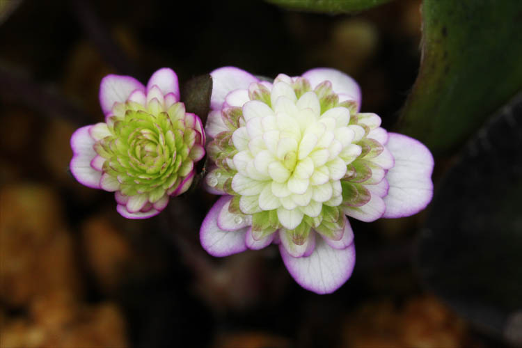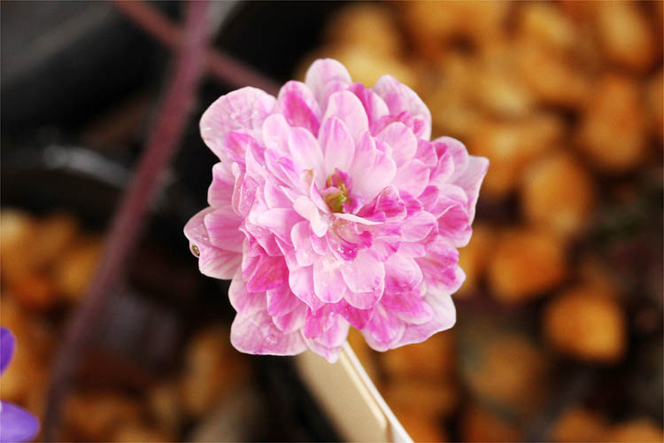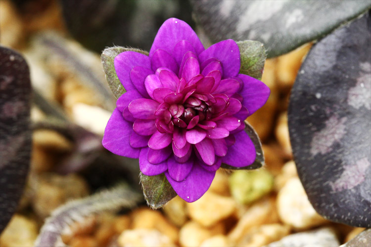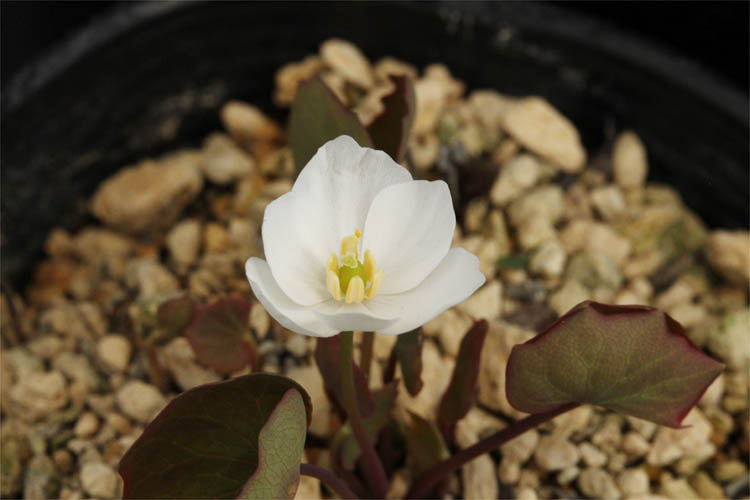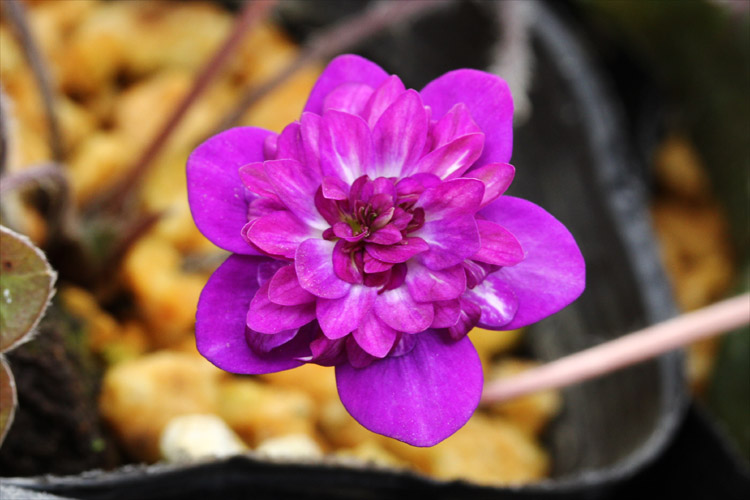 それから花がちょっと小さい点。これは肥料をやらなかったからですね。肥料をやらないと葉も痛みやすくなるし、花が小さくなってしまいます。しかしむしろ無肥料でちゃんと咲いていることに注目してください。雪割草は元々花付もよい植物です。ごくふつうに育てる場合、肥料はあくまでも成長の補助程度と考えてください。変化咲などで立派に咲かせたい場合は肥料は必須ですが、その場合も極端なやり過ぎは良くありません。徐々に施肥のタイミングを掴んでいってください。