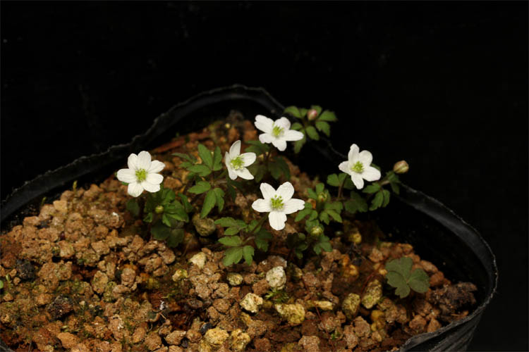 これは去年咲いたまま放置して今年を迎えた雪割草です。まあ咲いています。直射日光がたまに当たる程度の明るい半日陰で、雨の当たらない屋外に置きました。水は周りの植物のついでにやる程度でした。