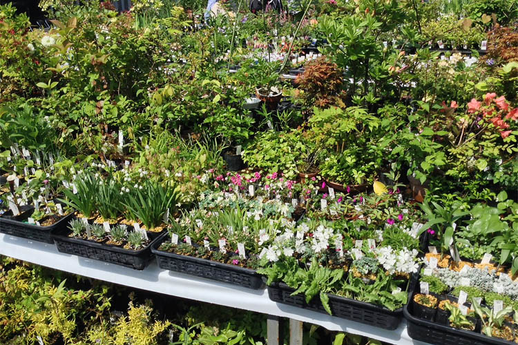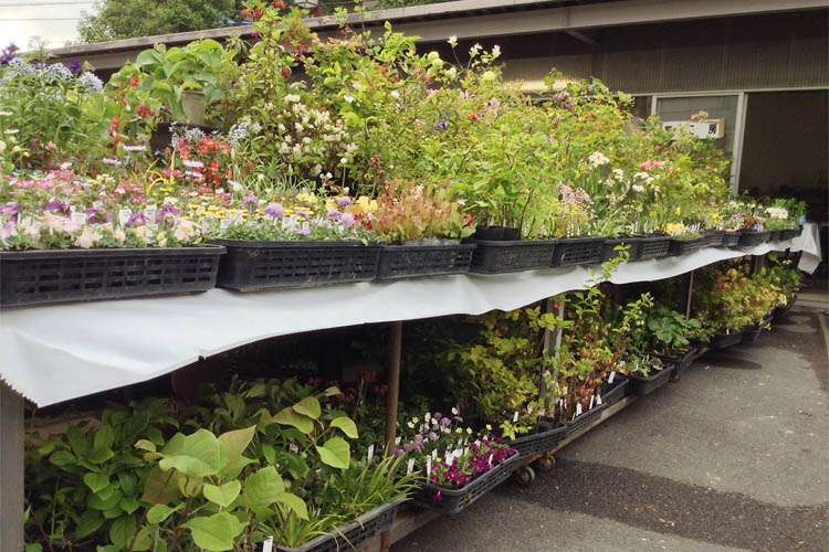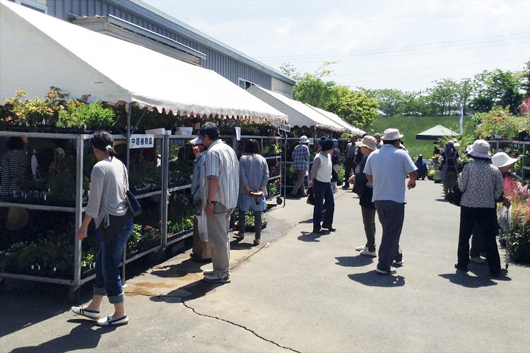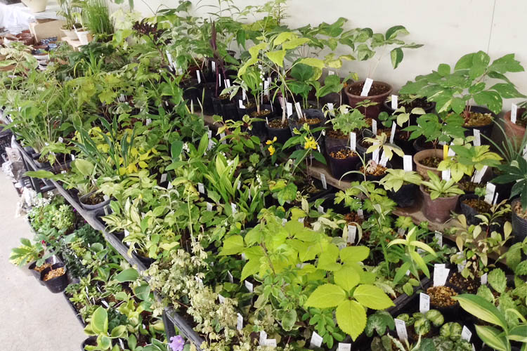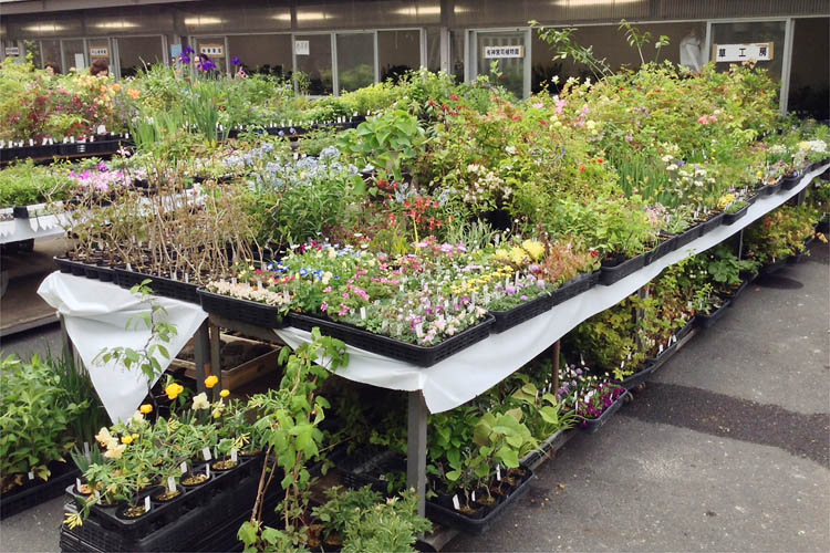 で、果たしてお客さんに来て頂けるのかどきどきしながら待っていたのですが、二日間ともたくさんのお客さんが遊びに来てくれました。並んでいるものを見てみると様々な山野草はもちろん、庭植用のガーデニング植物、庭木、斑入植物などいろいろあり、みなさんに楽しんでいただけたようでほっとしました。何人かの方に毎年やるの?と聞かれましたが、出店者も多く、長野近県でこれだけたくさんの植物が一度に見られる機会はそうないですし、山野草関係の一大イベントとして今後も続けて開催できればなーと思っています。