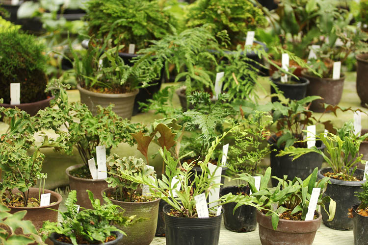 シダにも膨大な種類があり、詳しく識別するのにはかなり慣れが必要で私はよく分かりません。昔から変りものが見つかっていた代表的なものとして、ノキシノブ、イワオモダカ、ヒトツバ。この辺は芸も凝ったものが多く、面白いと思います。その他チャセンシダやイワデンダなどの野生種は種類が多く見分けにくいものがたくさんありますが、魅力的なものも多いです。あと、マツバランやイワヒバも作っていくと非常にきれいで、また丈夫でいい植物です。ただ、この二種は品種の違いが分かりづらいのが難点です。イワヒバについては「いわひば平成銘品集」という本が栃の葉書房さんから出ていて参考になります。