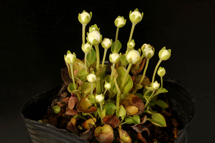 ウメバチソウというとじめっとした場所にありそうなものですが、意外と日当たりを好み、暗いところではかえって傷んでしまうことがあります。どの植物もそうですが適度な水やりが大切で、例えば半日陰に置くと言うことはそれだけ乾きにくくなることなので、毎日やっているとやり過ぎになることが多いです。特に、ウメバチソウのような小さい植物は蒸散作用も少ないのでなおさら。
