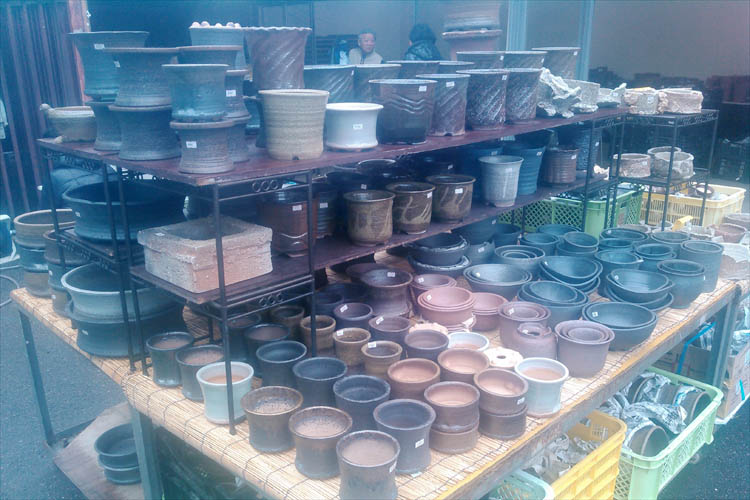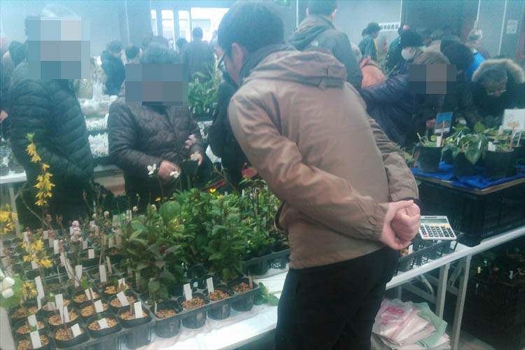 出店されているお店を覗いてみると、早春の山野草の他にも斑入植物や変わったカンアオイや春蘭、寒蘭、また山草鉢などいつもながら色々なものが並んでいて面白かったです。最終日の4時の撤収前にいろいろ買い物をしようと思っていたら、持ってきた台車が行方不明でそれを探し回っているうちに時間切れになってしまいました。