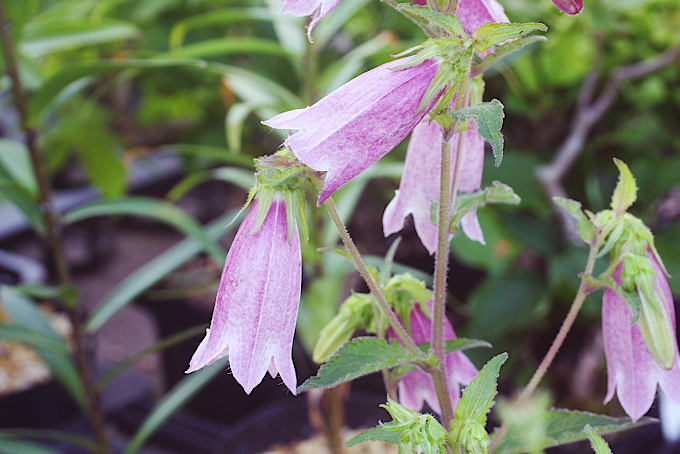 イシダテホタルブクロの淡い桃色で二重咲になるタイプ。これは交配なのかどうかわかりませんが、小型でかわいらしい品種です。